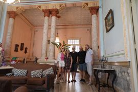 На вечерний ужин, который совпал с католическим Рождеством, нас пригласили хозяева гостевого дома, чтобы вместе отпраздновать этот день. Интересный факт: многие продукты для праздничного стола были привезены из Мексики за пару месяцев до торжества — дефицит продуктов на Кубе даёт о себе знать. Ужин был наполнен типичными испанскими блюдами, ведь один из хозяев — каталонец. Во время трапезы он рассказал долгую историю этого дома и своего переезда на Кубу. На следующий день, мы попрощались с хозяевами дома, сделали финальные фотографии и поехали в Сиенфуэгос.